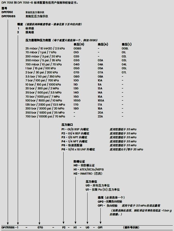 ●25 mbar- 200 bar (10 inH2O - 3000 psi/ 2.5 kPa - 20 MPa): G1/8 BSP内螺纹