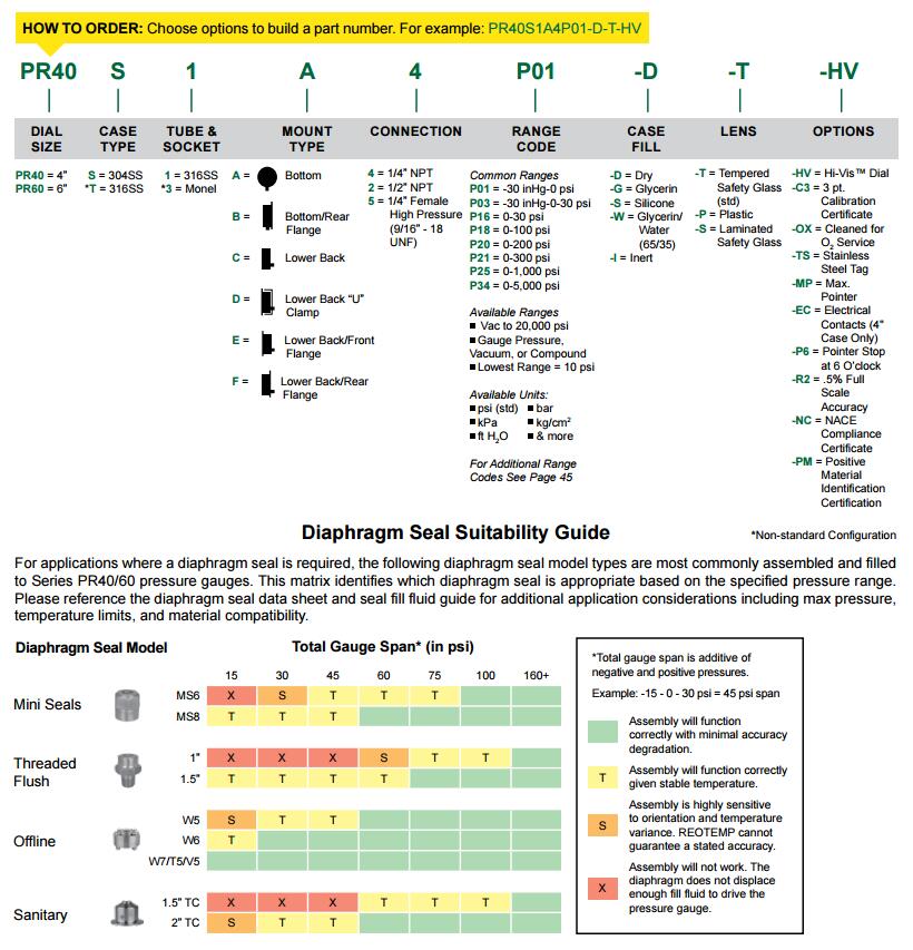 REOTEMP的PR40/PR60系列测量仪采用坚固的全焊接不锈钢结构,是重型工业应用的理想选择。 不锈钢外壳,管和接头焊接在一起,可实现优异的外壳密封和仪表完整性。 扭转式卡口环可轻松进行现场维修和校准服务。 建议在涉及振动的应用中进行液体填充(在工厂或现场)。 对于高腐蚀性,高温或严苛的维修应用,建议使用隔膜密封。