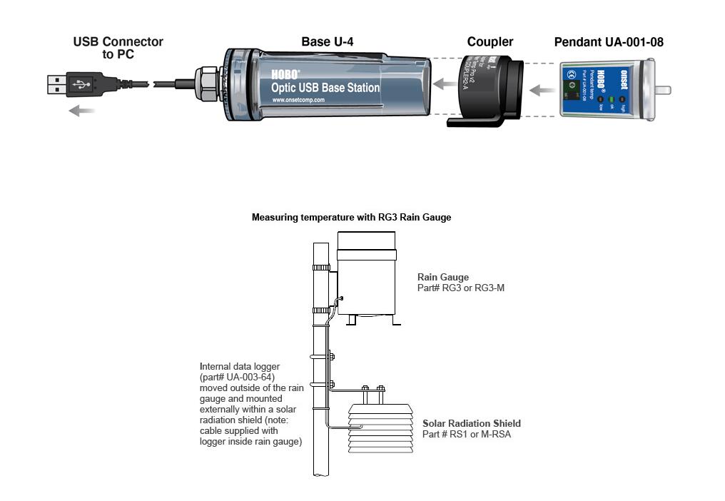 HOBO Pendant UA-003-64事件/温度记录仪是一款体积小巧的防水型记录仪,可用于翻斗式雨量筒,能够以1Hz的记录降水率、时间和降水持续时间等(RG3-M自计式雨量筒内置的事件记录仪即UA-003-64)。它具有10bit分辨率,能记录约23000组瞬时接触事件和温度数据(64K内存)。